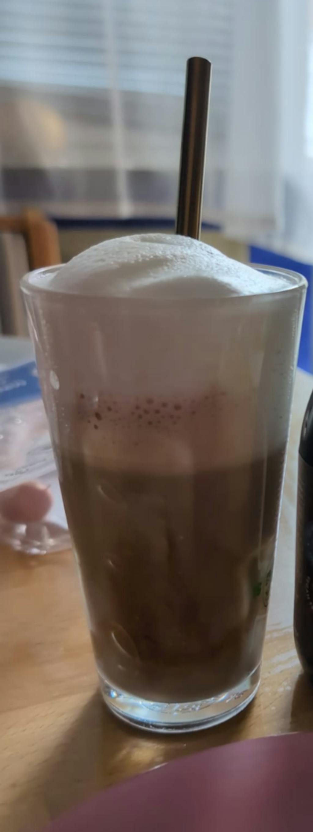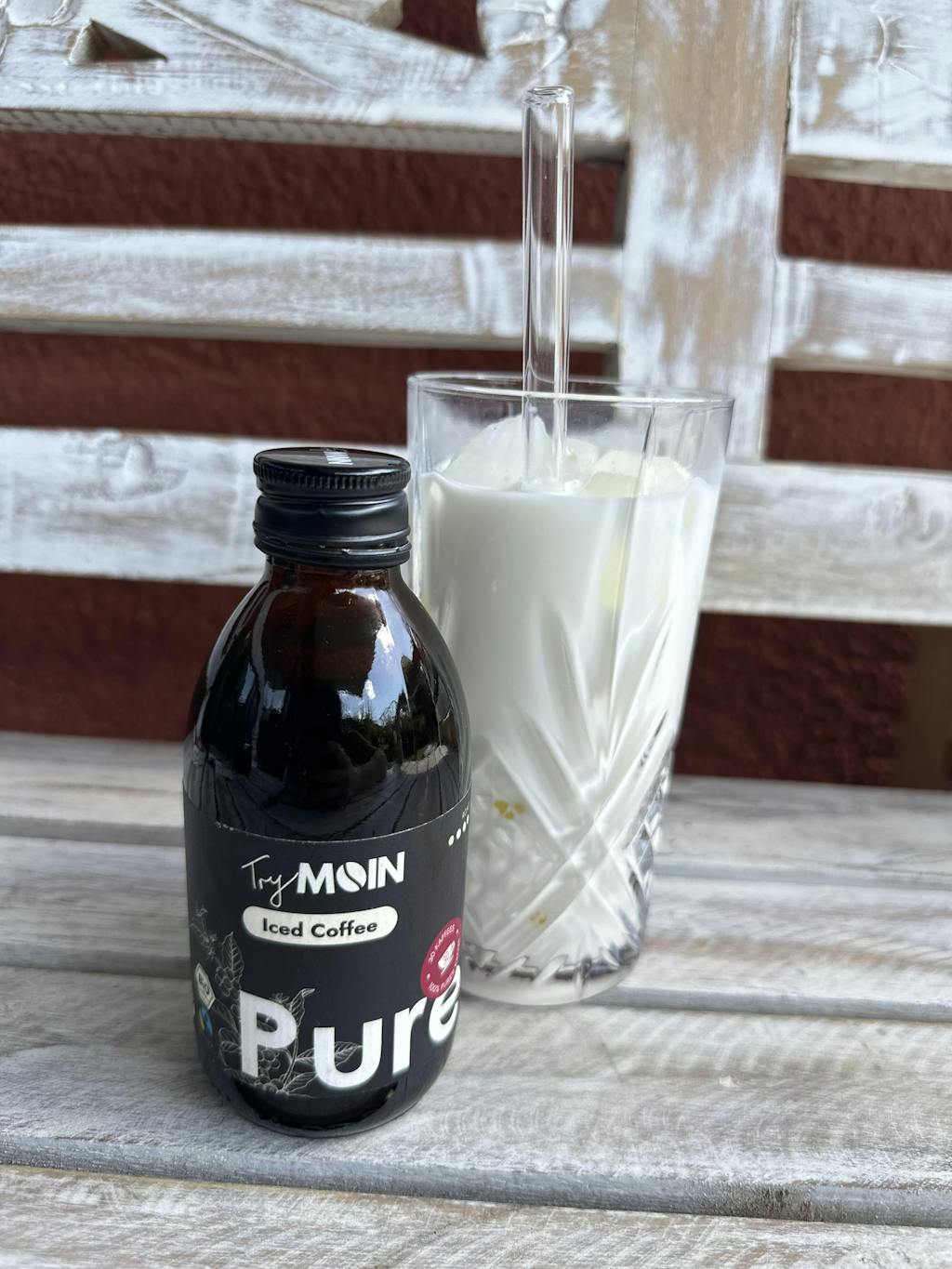 Glas mit Eiswürfeln und 200ml Milch (-alternative) füllen, 1-2 Löffel Moin dazu & genießen!